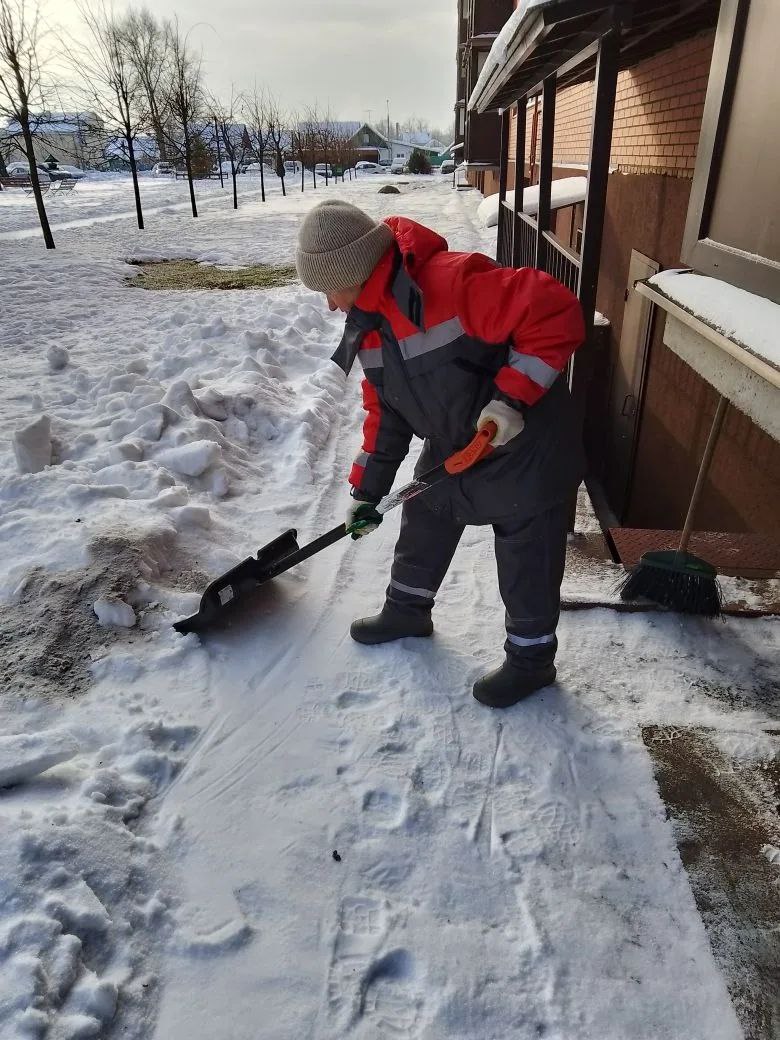 - Уборка входных групп от снега и наледи, обработка антигололедной смесью.